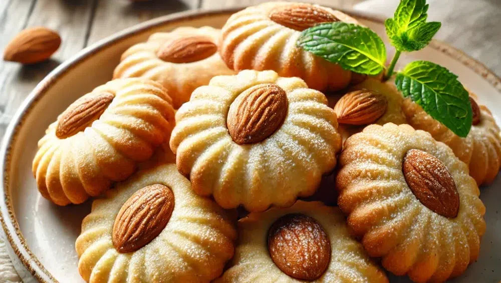 - Do dekoracji możesz użyć całych migdałów, układając je na wierzchu ciasteczek przed pieczeniem.