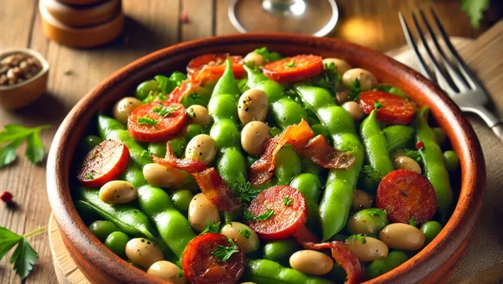 Bób po katalońsku to danie, które łączy prostotę wiejskiej kuchni z intensywnymi aromatami charakterystycznymi dla hiszpańskiej tradycji kulinarnej. Jest to potrawa pełna smaku, idealna na obiad lub kolację, która przeniesie cię w sam środek słonecznej Katalonii. Połączenie świeżego bobu, wyrazistej kiełbasy chorizo, wędzonego boczku i delikatnych ziołowych akcentów sprawia, że jest to danie, które każdy powinien spróbować.