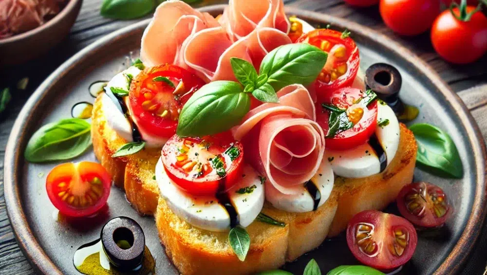 Bruschetta z mozzarellą, szynką parmeńską i pomidorkami koktajlowymi – włoski klasyk w nowoczesnym wydaniu