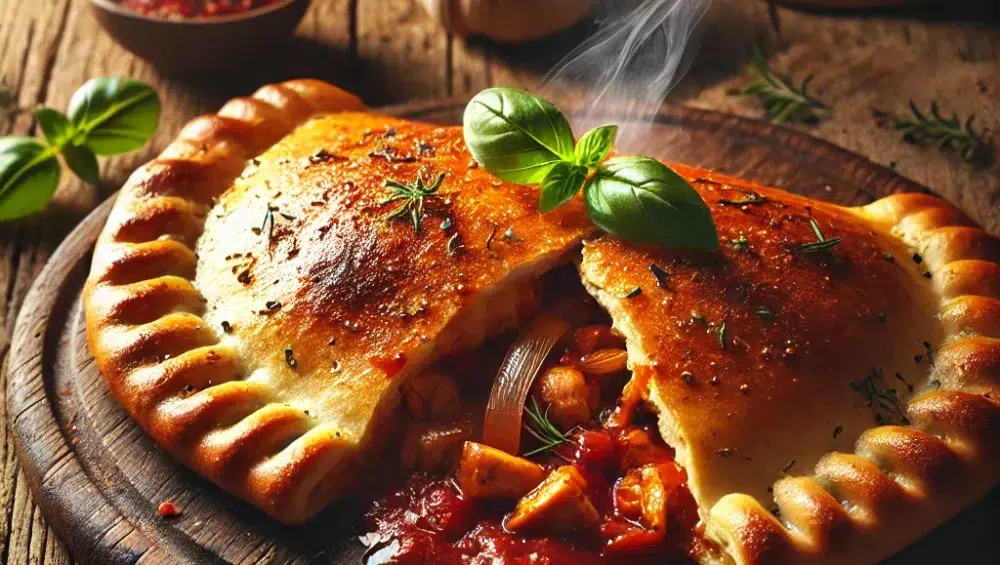 Calzone Toscana z kurczakiem to danie, które wprowadza do kuchni śródziemnomorski klimat i jest idealnym wyborem na dni, kiedy mamy ochotę na coś innego niż tradycyjna pizza. Chrupiące, złociste ciasto i soczyste nadzienie z wyrazistym sosem toscana to połączenie, które zachwyci nawet najbardziej wymagających smakoszy. Spróbuj tego przepisu, by poczuć włoskie smaki w domowym wydaniu. Smacznego!