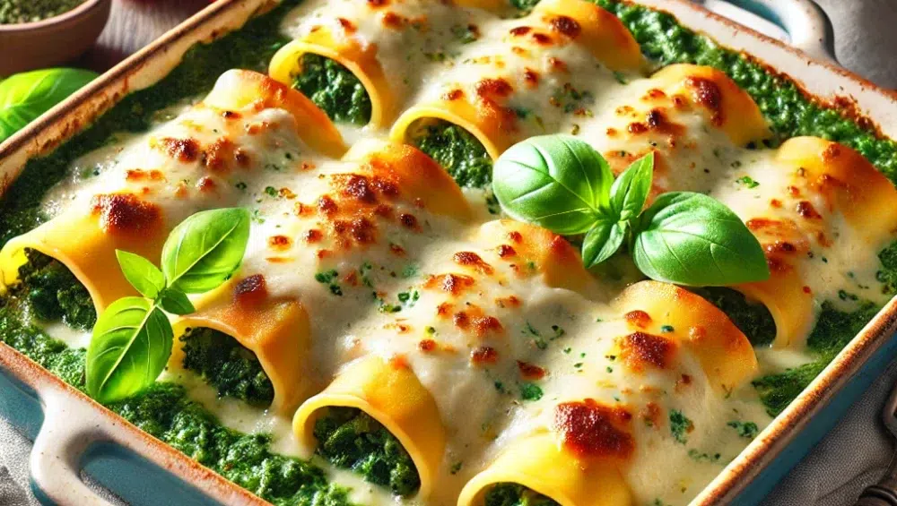 Cannelloni to włoski klasyk, który zyskał popularność na całym świecie dzięki delikatnej strukturze makaronu i bogatemu nadzieniu. W tym przepisie proponujemy wersję z zielonym sosem, który nadaje potrawie świeżości i wyrazistego smaku. Zielony sos szpinakowy to delikatna, kremowa baza, która idealnie łączy się z nadzieniem mięsnym i aromatycznymi przyprawami. To danie świetnie sprawdzi się na specjalne okazje, a także na rodzinny obiad. Kiedy zapieczone cannelloni wyjmiemy z piekarnika, ich wspaniały zapach natychmiast przyciągnie wszystkich domowników do stołu. Przygotowanie jest proste, ale wymaga uwagi i dokładności, co sprawia, że możemy cieszyć się prawdziwie domowym smakiem.