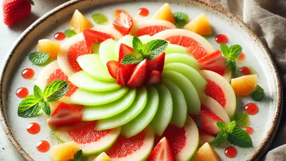 Carpaccio z miodowego melona to lekkie, eleganckie danie, które łączy naturalną słodycz owoców z intensywnością mięty i subtelną kwasowością cytrusów. Idealnie sprawdzi się jako przystawka na przyjęciach lub orzeźwiająca przekąska w letnie dni. Prosta w przygotowaniu, a zarazem wyrafinowana, zachwyci zarówno wyglądem, jak i smakiem. Spróbuj tego przepisu i wprowadź odrobinę wykwintności do swojej kuchni!