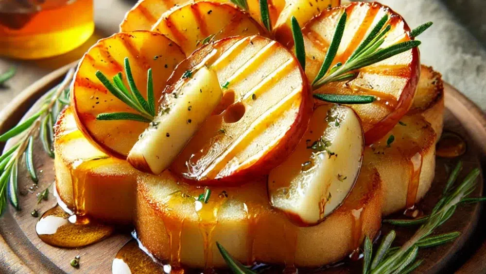 Połączenie słodyczy miodu, delikatnej kwaskowatości jabłek, wyrazistości sera i aromatycznego rozmarynu tworzy kulinarną harmonię, która zachwyca zarówno smakiem, jak i wyglądem. To idealna propozycja na elegancką przystawkę, wykwintny deser lub nietuzinkową przekąskę, która z pewnością zrobi wrażenie na gościach.