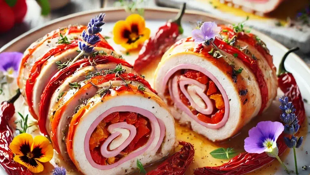Drobiowe roladki z papryką, szynką hiszpańską i suszonymi kwiatami to doskonały sposób na przygotowanie dania, które zachwyca zarówno smakiem, jak i wyglądem. Połączenie delikatnego mięsa z wyrazistą szynką, słodką papryką i subtelnym aromatem kwiatów to harmonia, która zadowoli nawet najbardziej wymagające podniebienia. Co więcej, to danie jest niezwykle wszechstronne – świetnie sprawdzi się zarówno na rodzinny obiad, jak i na romantyczną kolację we dwoje.