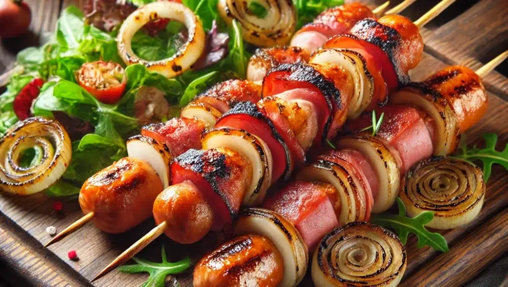 Grillowane szaszłyki z boczku i kiełbasy – prostota i smak w najlepszym wydaniu