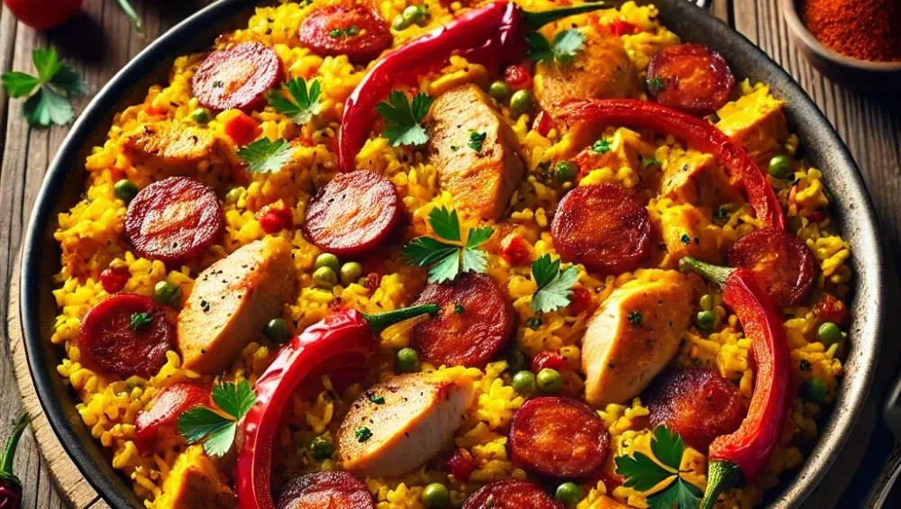 Hiszpańska paella z chorizo i kurczakiem to danie, które z łatwością wprowadzi hiszpańską atmosferę do Twojej kuchni. Aromatyczne przyprawy, intensywny smak chorizo i delikatność kurczaka sprawiają, że każda porcja tego dania to prawdziwa uczta dla podniebienia. Paella jest nie tylko smaczna, ale także bardzo efektowna – idealna na rodzinne obiady lub spotkania z przyjaciółmi. Spróbuj przygotować tę wersję paelli i poczuj magię kuchni hiszpańskiej w swoim domu. Smacznego!