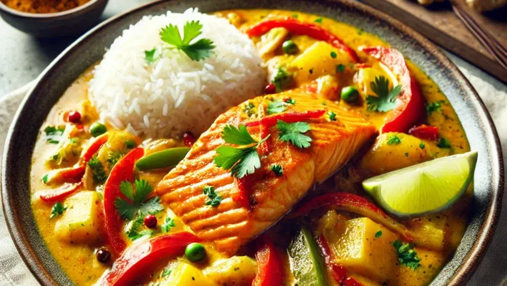 Indyjski łosoś w sosie słodko-kwaśnym to danie, które zachwyci każdego miłośnika kuchni orientalnej. Połączenie soczystego łososia z aromatycznym sosem i chrupiącymi warzywami to uczta dla zmysłów. To danie nie tylko smakuje wyśmienicie, ale także pięknie prezentuje się na talerzu. Doskonałe zarówno na wyjątkową kolację, jak i codzienny obiad, kiedy chcemy przenieść się w kulinarną podróż do Indii. Smacznego!