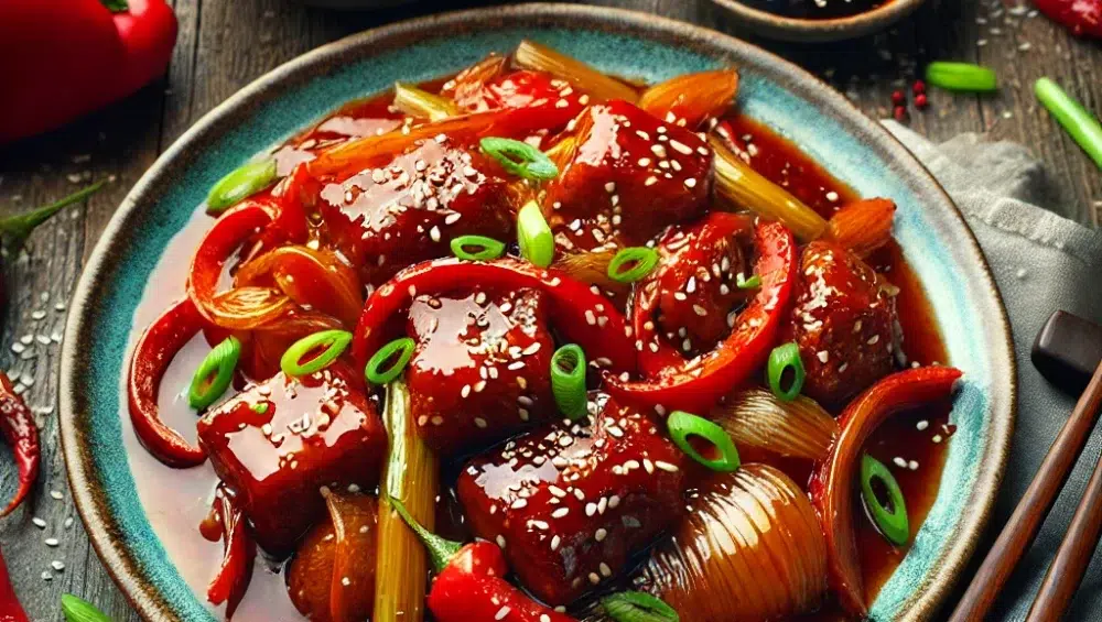 Karkówka w sosie słodko-kwaśnym to danie inspirowane kuchnią azjatycką, które łączy delikatność mięsa z intensywnym smakiem warzyw i aromatycznym sosem. Ten przepis to doskonałe połączenie soczystej karkówki, pędów bambusa, papryki i cebuli, wzbogaconego o słodko-kwaśny sos z nutą przecieru pomidorowego i sosu sojowego. Danie to idealnie sprawdzi się zarówno na codzienny obiad, jak i na bardziej uroczystą kolację, gdy chcesz zaskoczyć swoich bliskich wyrafinowanym smakiem.