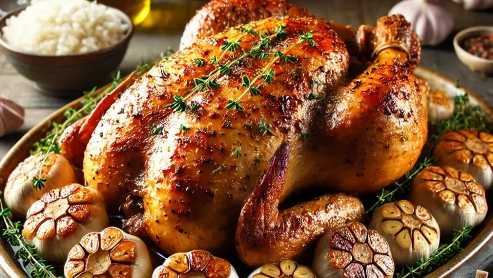 Kurczak w czosnku to jedno z tych dań, które zachwyca prostotą przygotowania, a jednocześnie intensywnym smakiem i aromatem. Pieczony w całości kurczak z dodatkiem dużej ilości czosnku to doskonała propozycja na rodzinny obiad lub spotkanie z przyjaciółmi. Delikatne, soczyste mięso nabiera wyjątkowego charakteru dzięki powolnemu duszeniu w aromatycznym sosie czosnkowym, który dosłownie rozpływa się w ustach. Klasyczny smak czosnku w połączeniu z tymiankiem i natką pietruszki tworzy idealne połączenie, które podkreśla naturalną soczystość mięsa.