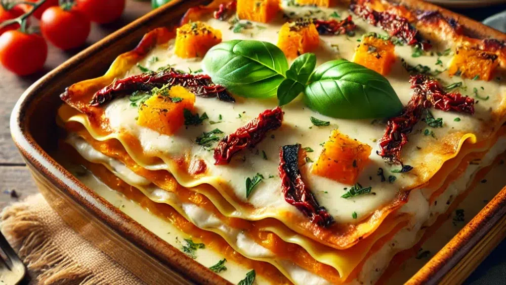 Lasagne z mozzarellą, dynią i suszonymi pomidorami – kremowe danie na jesienne dni
