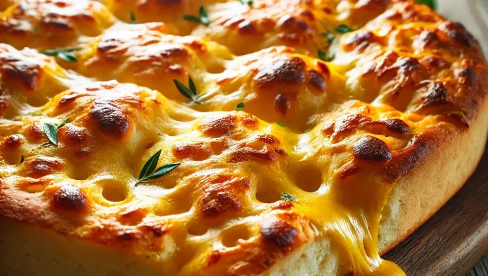 - Podanie: Ligurską focaccię serową podawaj na gorąco, kiedy ser wciąż jest płynny i ciągnący się. Najlepiej smakuje świeżo po upieczeniu, kiedy chrupiąca skórka kontrastuje z kremowym wnętrzem.