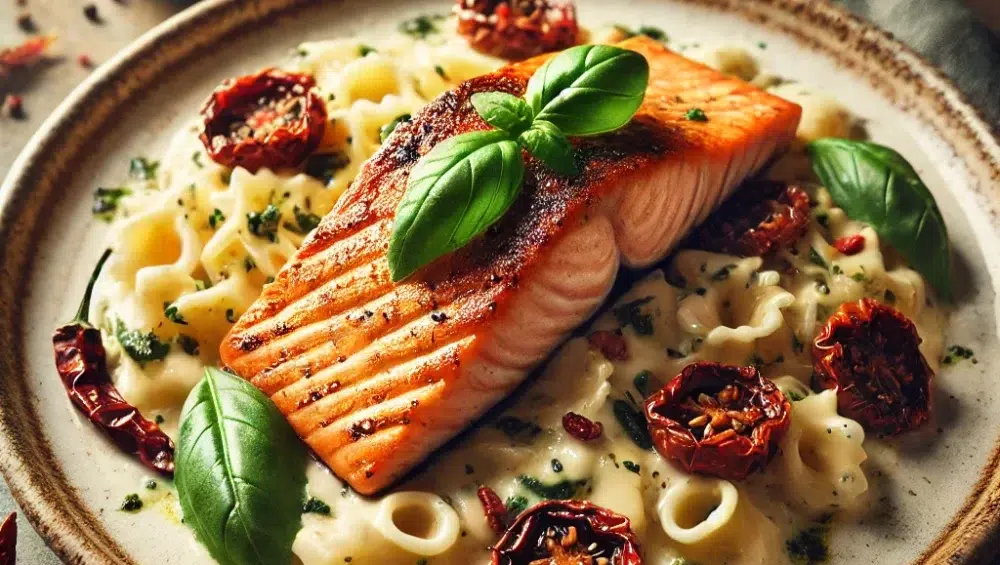 Grillowany łosoś to klasyka w kuchni, która zawsze zachwyca zarówno smakiem, jak i wyglądem. Jego delikatne, soczyste mięso świetnie komponuje się z kremowym sosem śmietankowym i makaronem, tworząc danie, które jest nie tylko wykwintne, ale też niezwykle proste w przygotowaniu. Dodatek suszonych pomidorów, bazylii i szczypty chilli wprowadza odrobinę włoskiej elegancji, jednocześnie podkreślając smak ryby. To idealny przepis na romantyczną kolację, rodzinny obiad czy danie na specjalną okazję, które łączy w sobie prostotę i wyrafinowanie.