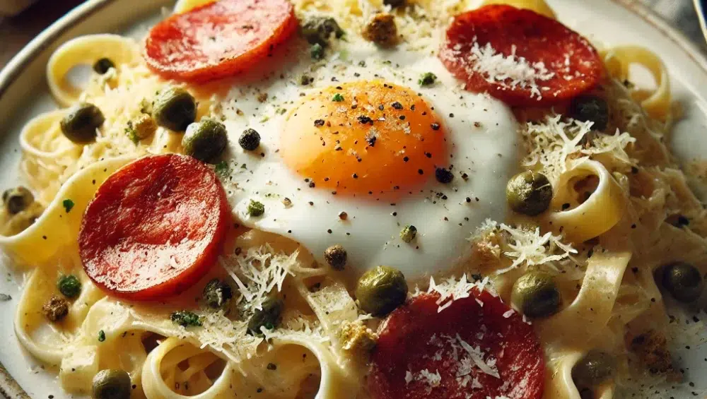 Makaron fettuccine z pepperoni to danie, które zadowoli zarówno fanów klasycznej włoskiej kuchni, jak i miłośników wyrazistych, pikantnych smaków. To idealna propozycja na szybki obiad lub kolację, którą można przygotować w krótkim czasie, a efekt końcowy zawsze zachwyca. Kremowy sos, chrupiące pepperoni i subtelny aromat czosnku tworzą połączenie, które z pewnością stanie się ulubionym przepisem w Twojej kuchni. Smacznego!
