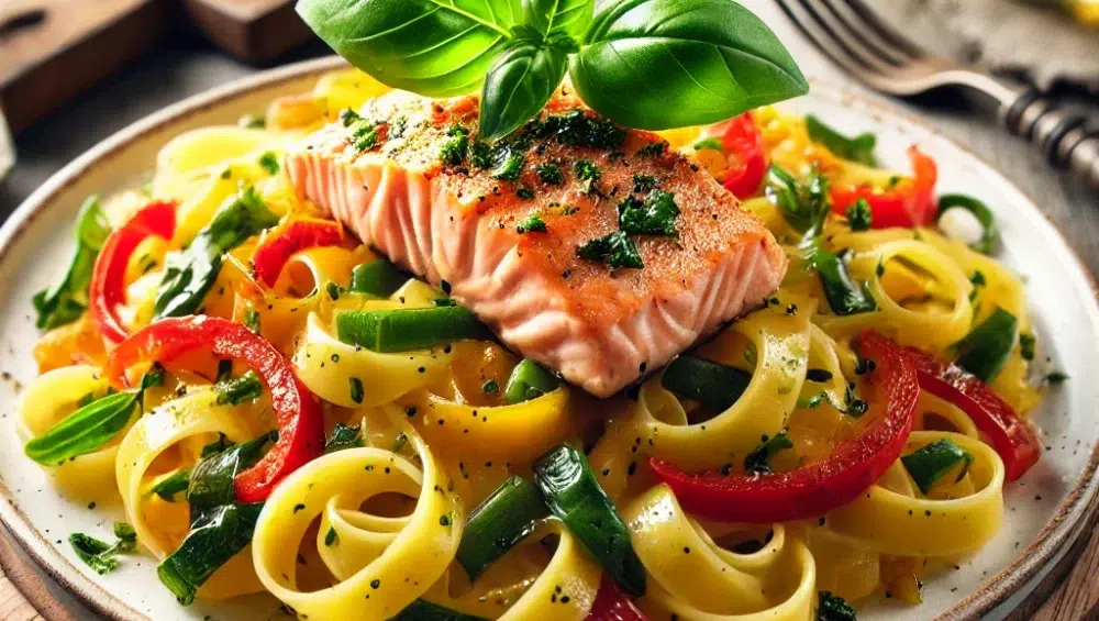 Paprykowe tagliatelle z bazyliowym łososiem – Połączenie włoskości z nutą świeżości