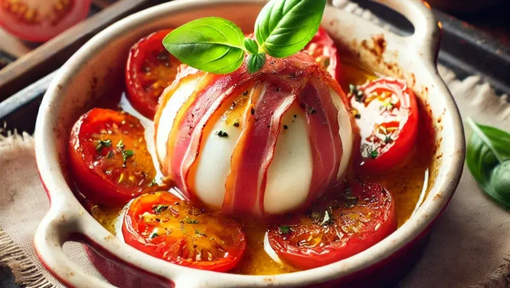 Pieczona mozzarella z pomidorami to danie, które łączy w sobie prostotę i wykwintność. Delikatna mozzarella, otulona szynką parmeńską, pieczona w aromatycznym sosie pomidorowym z dodatkiem zół prowansalskich, to idealna propozycja na kolację we dwoje, spotkanie z przyjaciółmi czy rodzinny obiad. Podana z chrupiącym pieczywem, pozwala w pełni cieszyć się bogactwem smaku i aromatu.
