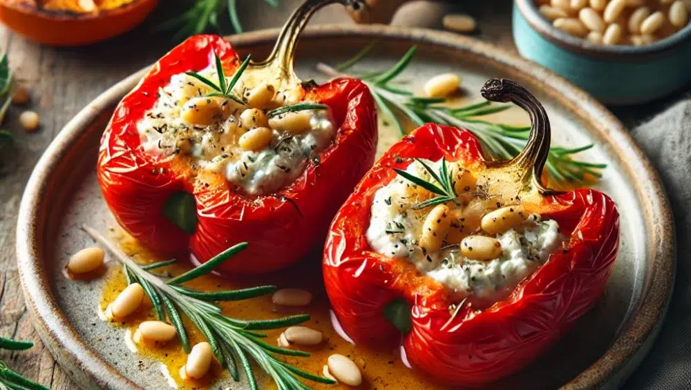 Pieczona nadziewana papryka to danie, które łączy w sobie prostotę przygotowania z wyrafinowanym smakiem. Dzięki połączeniu koziego sera, orzeszków piniowych i delikatnego aromatu rozmarynu powstaje wyśmienite danie, które doskonale sprawdzi się zarówno jako przystawka, jak i główna atrakcja obiadu. Smak pieczonej papryki podkreślony nutą pomarańczy i delikatną ostrością chili przenosi nas w świat śródziemnomorskiej kuchni, pełnej wyrazistych smaków i aromatów. Jeśli szukasz przepisu, który zachwyci Twoich gości i wprowadzi nieco południowego słońca na Twój stół, ten przepis jest właśnie dla Ciebie.