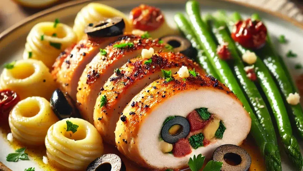 - Dodatki: Pierś nadziewana oliwkami i natką świetnie smakuje w towarzystwie zielonej fasolki, gnocchi w pomidorowym sosie lub sałatki z rukolą i pomidorkami koktajlowymi.