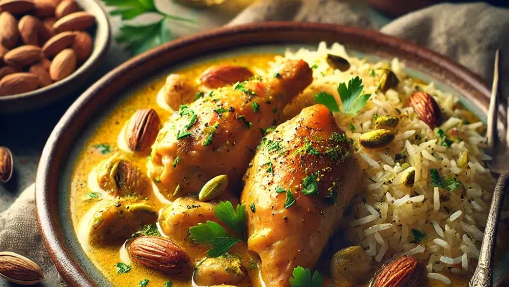 Pollo en pepitoria to kwintesencja hiszpańskiej kuchni – danie, które łączy tradycję z niezwykłym smakiem. Delikatne mięso kurczaka w kremowym sosie migdałowym, podkreślone aromatem białego wina i szafranu, to propozycja, która zadowoli zarówno miłośników klasyki, jak i tych, którzy szukają nowych smaków. W połączeniu z aromatycznym ryżem z pistacjami to danie, które przeniesie cię wprost do słonecznej Hiszpanii.