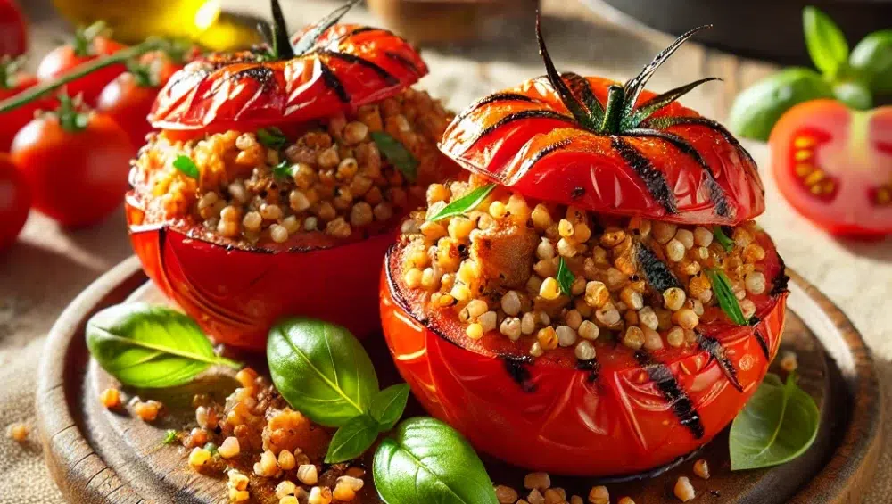 Pomidory z grilla z kaszą gryczaną to zdrowa i smaczna alternatywa dla tradycyjnych dań grillowych. Połączenie lekkich warzyw, sycącej kaszy i aromatycznych przypraw sprawia, że danie jest nie tylko pyszne, ale też pełnowartościowe. Kasza gryczana dostarcza cennych składników odżywczych, a świeże pomidory są bogate w witaminy i antyoksydanty. Dodatkowo to prosty sposób, by wprowadzić do grillowego menu odrobinę różnorodności.