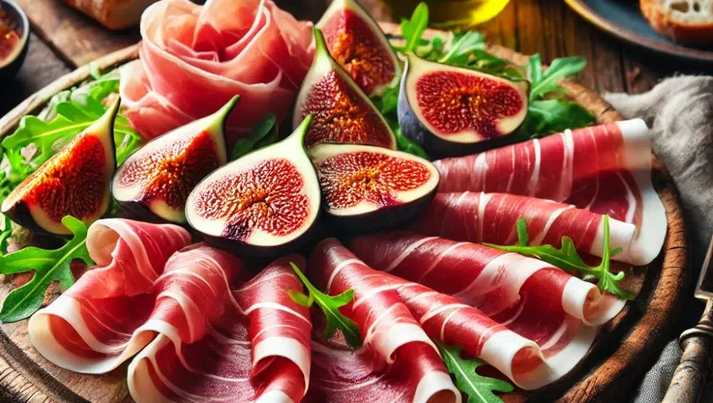 2. Z melonem i figami – Słodkie owoce, takie jak melon i figi, świetnie komponują się z lekko słonym smakiem szynki parmeńskiej. To klasyczne połączenie, które zachwyca swoim kontrastem smaków.