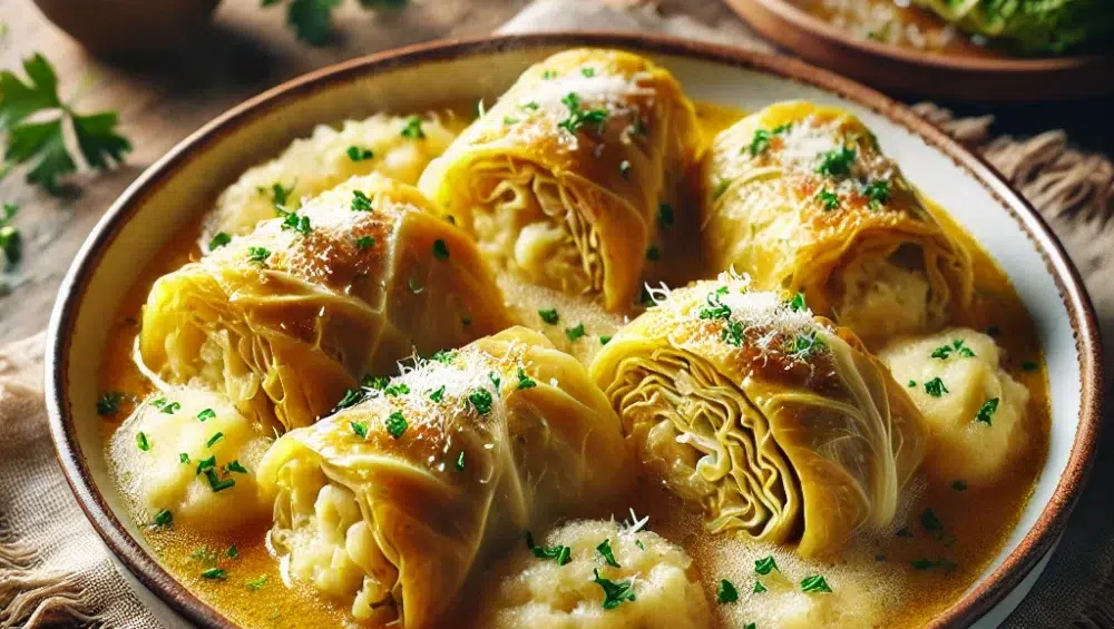 Gołąbki z ziemniakami (Involtini di verza e patate) to doskonała alternatywa dla tradycyjnych gołąbków z ryżem i mięsem. Wersja wegetariańska, w której główną rolę odgrywają ziemniaki i parmezan, nie tylko zaskakuje nowym smakiem, ale również stanowi świetny sposób na wprowadzenie lżejszych dań do codziennego menu. Kremowy farsz w połączeniu z delikatną kapustą oraz aromatycznym bulionem i parmezanem tworzy danie, które zachwyci nawet najbardziej wymagające podniebienia. To proste, ale jednocześnie wyjątkowe danie doskonale sprawdzi się na rodzinny obiad lub kolację.