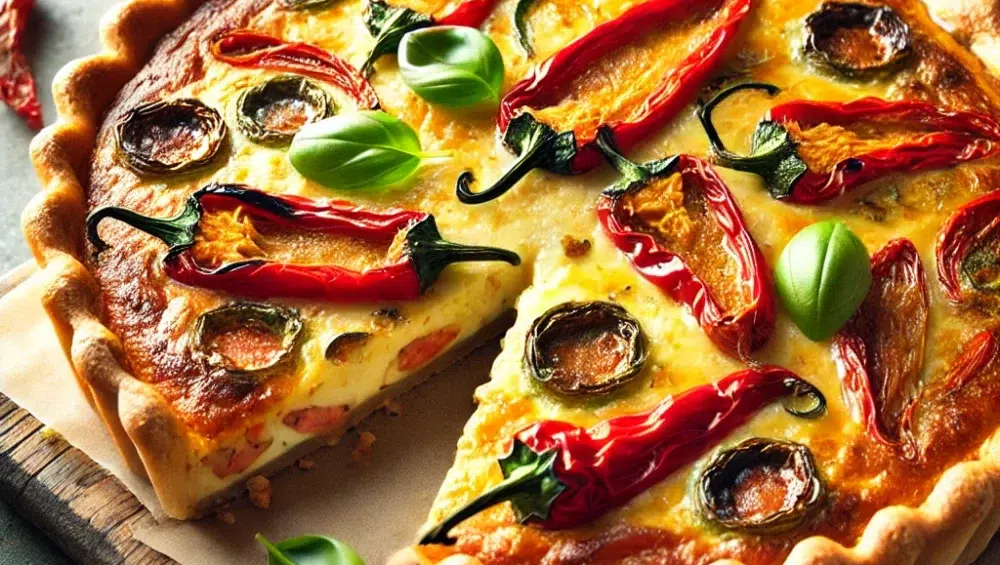 Quiche to klasyczne danie, które z powodzeniem sprawdza się zarówno na eleganckie kolacje, jak i na codzienny posiłek. Jego uniwersalność pozwala na nieskończoną liczbę wariacji smakowych, a quiche z papryczkami padrón i wędzonym serem to przykład wyjątkowo ciekawej i aromatycznej wersji. Papryczki padrón, znane ze swojej delikatnej ostrości, idealnie komponują się z intensywnym smakiem wędzonego sera i szynki szwarcwaldzkiej. Całość podana na kruchym cieście z masą jajeczno-śmietanową tworzy wyraziste i zrównoważone danie, które zadowoli nawet najbardziej wymagające podniebienia.