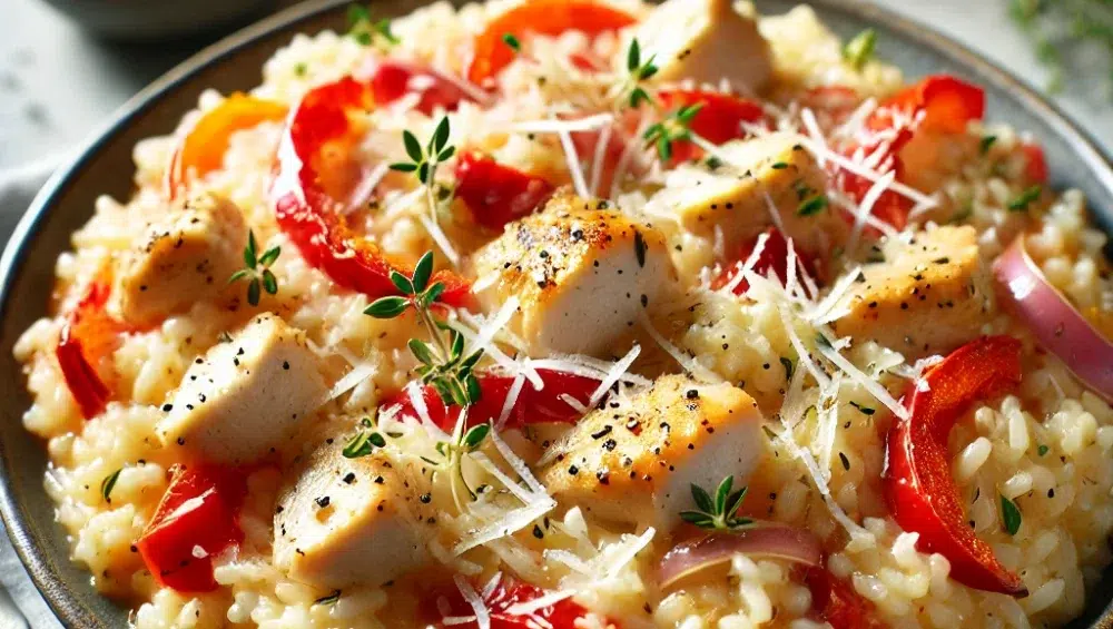 Risotto z kurczakiem to danie, które zachwyca swoją kremową konsystencją, delikatnością ryżu i wyrazistością dodatków, takich jak czerwona papryka i tymianek. To danie idealne na każdą okazję – zarówno na szybki, codzienny obiad, jak i na wyjątkową kolację. Choć przygotowanie risotto wymaga uwagi, efekt końcowy z pewnością wynagrodzi czas spędzony w kuchni. Smacznego!