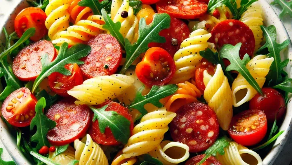 Sałatka makaronowa z salami, pomidorkami i rukolą – połączenie prostoty i intensywnych smaków