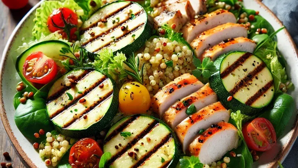 Sałatka z cukinią, kurczakiem i kaszą jaglaną to doskonałe połączenie lekkości i sycących składników, które sprawdzi się zarówno jako samodzielny posiłek, jak i dodatek do innych dań. Bogata w białko, błonnik oraz witaminy, jest idealnym wyborem dla osób dbających o zdrową dietę. Smaki świeżych warzyw, soczystego kurczaka oraz aromatycznego sosu tworzą harmonijną kompozycję, która z pewnością przypadnie do gustu każdemu. Smacznego!