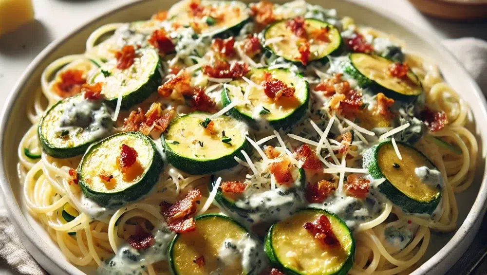 Serowe spaghetti z cukinią to doskonałe połączenie klasycznego makaronu z delikatnymi warzywami, chrupiącym boczkiem i wyrazistymi serami. To danie, które sprawi, że prosty makaron stanie się wykwintnym obiadem pełnym aromatycznych składników. Kremowy ser pleśniowy i starty parmezan tworzą aksamitny sos, który doskonale komponuje się z lekko chrupiącą cukinią i smażonym boczkiem. To przepis, który sprawdzi się zarówno na szybki obiad, jak i na bardziej elegancką kolację.