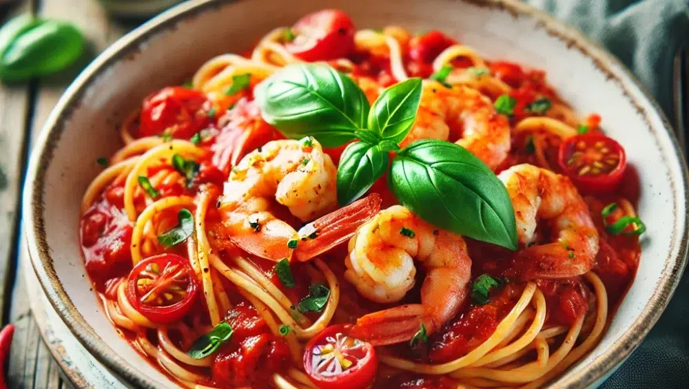 Sos pomidorowy z krewetkami i makaronem – przepis na smakowite, śródziemnomorskie danie