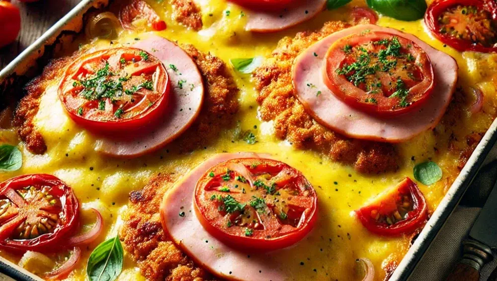 Sznycle cielęce to danie, które zawsze robi wrażenie na stole – soczyste, delikatne i pełne smaku. W tej wersji zapiekane są z warzywami, szynką i żółtym serem, co nadaje im niezwykłej delikatności i bogactwa aromatów. Dzięki dodatkom takich składników jak pomidory, cebula, seler naciowy i świeże zioła, smak staje się pełniejszy i idealnie zbalansowany. Zapiekane sznycle cielęce świetnie sprawdzą się zarówno na co dzień, jak i na specjalne okazje, zachwycając swoim wyglądem i smakiem.