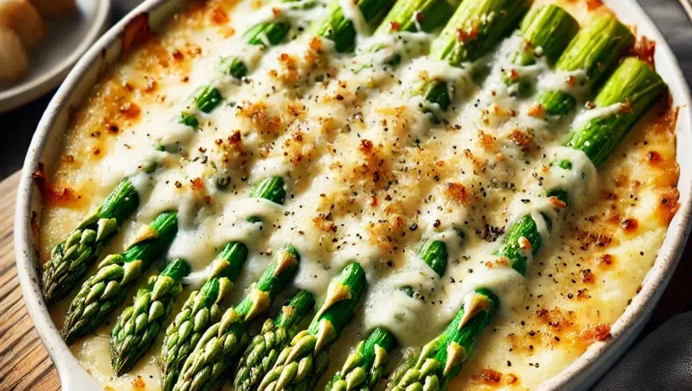 Upieczone szparagi wyjmujemy z piekarnika i polewamy je przygotowanym sosem beszamelowym. Całość posypujemy resztą startego parmezanu, który podczas zapiekania stworzy na powierzchni apetyczną, złocistą skorupkę. Szparagi w beszamelu wkładamy ponownie do piekarnika na około 20 minut w temperaturze 180°C, aż danie będzie pięknie zapieczone.