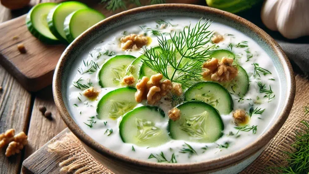 Tarator to tradycyjny bułgarski chłodnik, który jest idealnym daniem na gorące letnie dni. Lekki, orzeźwiający i pełen smaku, stanowi doskonałe połączenie kremowego jogurtu, chrupiących ogórków, świeżego koperku i aromatycznego czosnku. Jego unikalnym dodatkiem są orzechy włoskie, które nadają potrawie wyjątkowej tekstury i delikatnie orzechowego smaku. Tarator nie tylko wspaniale smakuje, ale również jest bardzo prosty w przygotowaniu, dzięki czemu można go przyrządzić w zaledwie kilka chwil. To danie świetnie sprawdzi się zarówno jako przystawka, jak i lekki obiad w upalne dni.