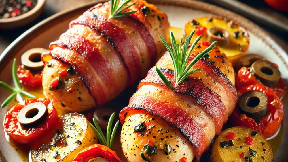 Pieczone piersi kurczaka to klasyka wielu kuchni, ale dzisiaj przeniesiemy ten prosty przepis na wyższy poziom, dodając intensywną w smaku tapenadę z oliwek i anchois oraz otulając mięso plastrami aromatycznego wędzonego boczku. Całość dopełni pieczona papryka, ziemniaki i soczyste pomidory, tworząc danie idealne na uroczysty obiad lub weekendowy posiłek w gronie bliskich. Składniki Tapenada: 3 […]