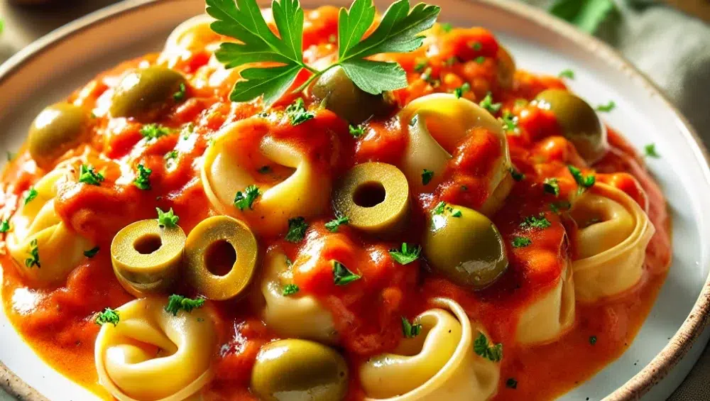 Tortellini, te małe, nadziewane pierożki, są jednym z symboli włoskiej kuchni. Dzięki swojej wszechstronności doskonale komponują się z różnymi sosami i dodatkami. Tortellini w sosie oliwkowo-pomidorowym to prosty, ale niezwykle smaczny sposób na przyrządzenie tego klasycznego dania. Kremowy sos na bazie krojonych pomidorów, czosnku i cebuli, wzbogacony o zielone oliwki oraz ziołowe przyprawy, tworzy harmonijną kompozycję smaków, która sprawi, że poczujesz się jak we włoskiej trattorii. Delikatny smak śmietany doskonale łączy wszystkie składniki, a świeża rzeżucha nadaje daniu odrobinę świeżości i orzeźwienia.