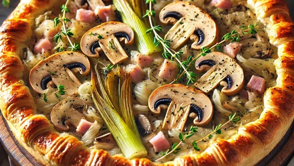 Tourte to danie, które łączy w sobie delikatność ciasta francuskiego z bogactwem smaku nadzienia. Ta wersja z kurczakiem, porem i tymiankiem to doskonałe połączenie aromatycznych składników, które razem tworzą wyśmienitą kompozycję. Świeży tymianek dodaje całości wyjątkowego, ziołowego charakteru, a chrupiące ciasto francuskie nadaje potrawie wyrafinowany wygląd i smak. To danie sprawdzi się na uroczystą kolację, spotkanie w gronie przyjaciół czy po prostu jako pyszny, domowy obiad.