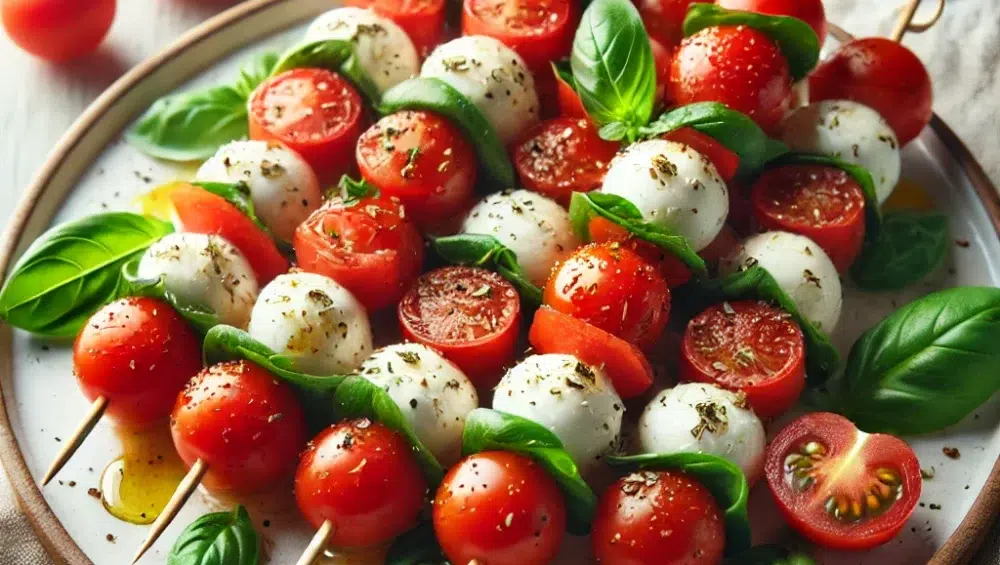 Caprese to kwintesencja włoskiej kuchni – prostota, świeżość i doskonałe połączenie smaków. Wersja sałatki na szpadkach dodaje temu klasycznemu daniu nowoczesnego i eleganckiego wyglądu, który sprawdzi się na różne okazje. Jest to doskonały pomysł na lekką przystawkę, która zachwyci zarówno smakoszy, jak i tych, którzy cenią sobie szybkie, ale efektowne rozwiązania. Smacznego!