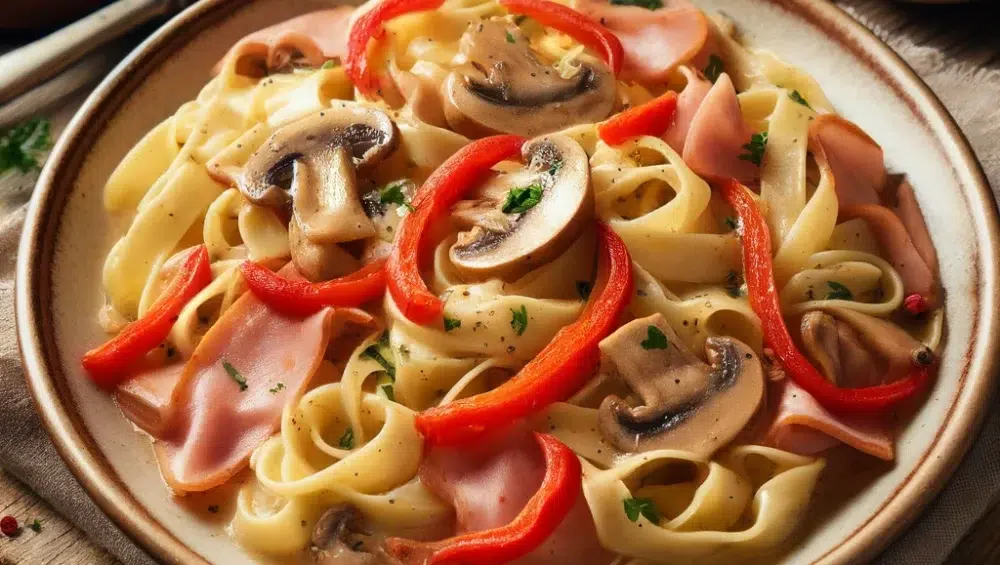 Makaron to jedna z najbardziej uniwersalnych potraw – można go przygotować na milion różnych sposobów! Jeśli lubicie kremowe sosy i wyrazisty smak pieczarek, ten przepis jest właśnie dla Was. Wstążki z sosem pieczarkowym, papryką i szynką to pełne aromatu i aksamitnie kremowe danie, które doskonale sprawdzi się zarówno na szybki obiad, jak i na elegancką kolację. Przekonajcie się, że to prosty przepis, który z pewnością zachwyci Waszych bliskich!