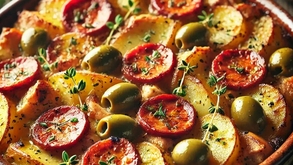 Jeśli szukasz dania, które łączy soczystego kurczaka z wyrazistym smakiem hiszpańskiego chorizo, to ten przepis jest dla Ciebie! Zapiekanka z kurczakiem i chorizo to połączenie klasycznych, domowych smaków z nutą śródziemnomorskiej kuchni. Kiełbasa chorizo, delikatne kawałki kurczaka oraz chrupiące ziemniaki, zapieczone razem w jednym naczyniu, tworzą danie idealne na rodzinny obiad.