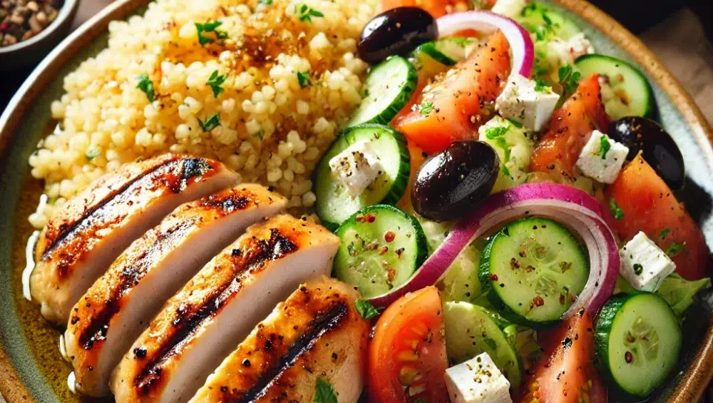 Zestaw lunchowy z grillowanym kurczakiem, sałatką grecką i kaszą bulgur to doskonała propozycja dla wszystkich, którzy cenią sobie zdrowe, pożywne i pełne smaku posiłki. Łatwy w przygotowaniu, lekki, a jednocześnie sycący – to danie, które zadowoli nawet najbardziej wymagające podniebienia. Wprowadź ten przepis do swojego menu i ciesz się smakiem zdrowych składników każdego dnia!