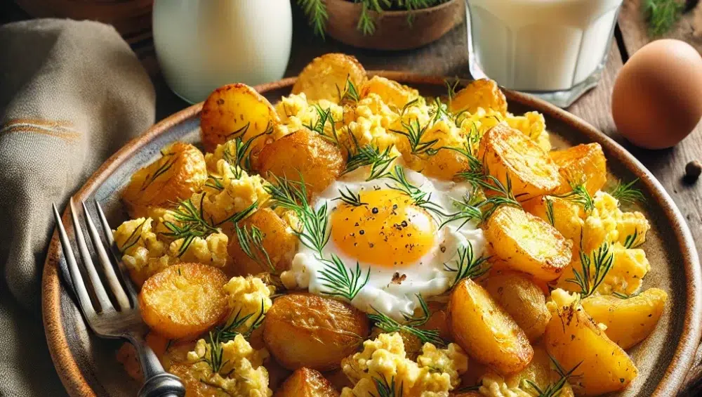 Ziemniaki młode zasmażane z jajkami to potrawa, która idealnie wpisuje się w polską tradycję kuchenną. Prosta, a jednocześnie niezwykle smaczna, często przywołuje wspomnienia z dzieciństwa i rodzinnych posiłków. To danie, które doskonale sprawdzi się zarówno jako szybki obiad, jak i kolacja. Lekko chrupiące ziemniaki, delikatne jajka oraz aromatyczny koperek tworzą kompozycję, która zachwyca swoją prostotą i pełnią smaku. Przepis na ziemniaki młode zasmażane z jajkami jest świetnym sposobem na wykorzystanie ziemniaków pozostałych po wcześniejszym posiłku. Dodanie jajek sprawia, że potrawa staje się sycąca i pożywna, a odrobina masła klarowanego oraz świeżego koperku nadaje jej charakterystyczny aromat. To idealna propozycja dla miłośników kuchni w duchu „zero waste”, którzy chcą przygotować coś pysznego bez zbędnego wysiłku.